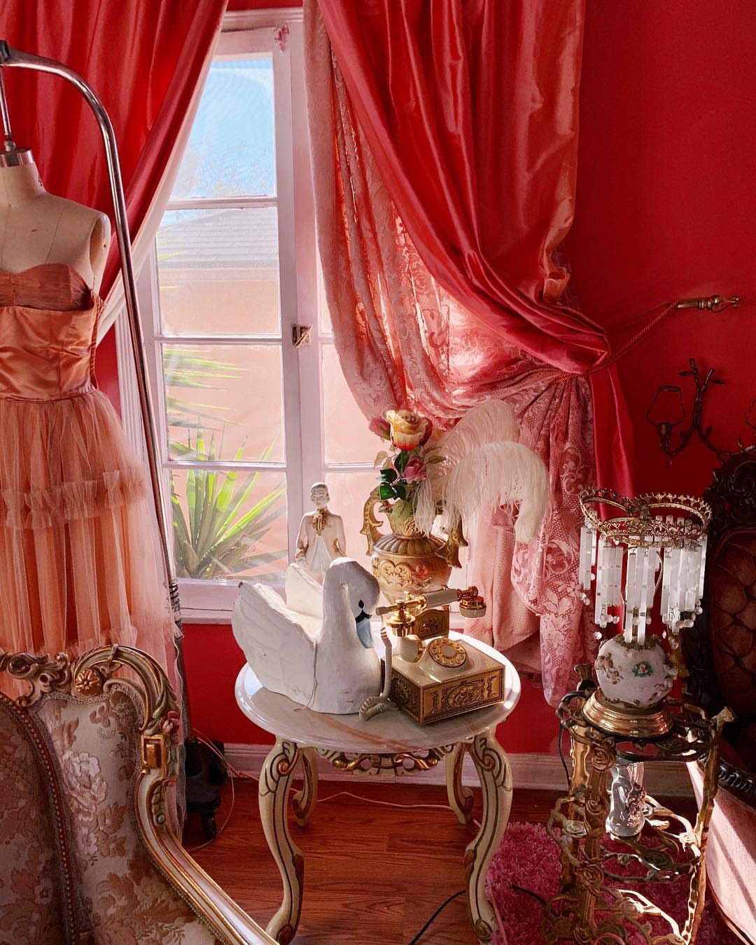 The house has themed rooms that are meticulously styled with antiques and a clear passion for beauty and glamour. They also include original art pieces by Carol (such as below). I think this brings an especially unique touch to the house that she styled so fabulously! Renting the space for photo shoots and film sets is great, but I also think Carol’s story for how she pursued her dreams is an important one and all the more reason to use her space: our time in life is limited, and remembering to pursue our dreams is all that matters at the end of the day.