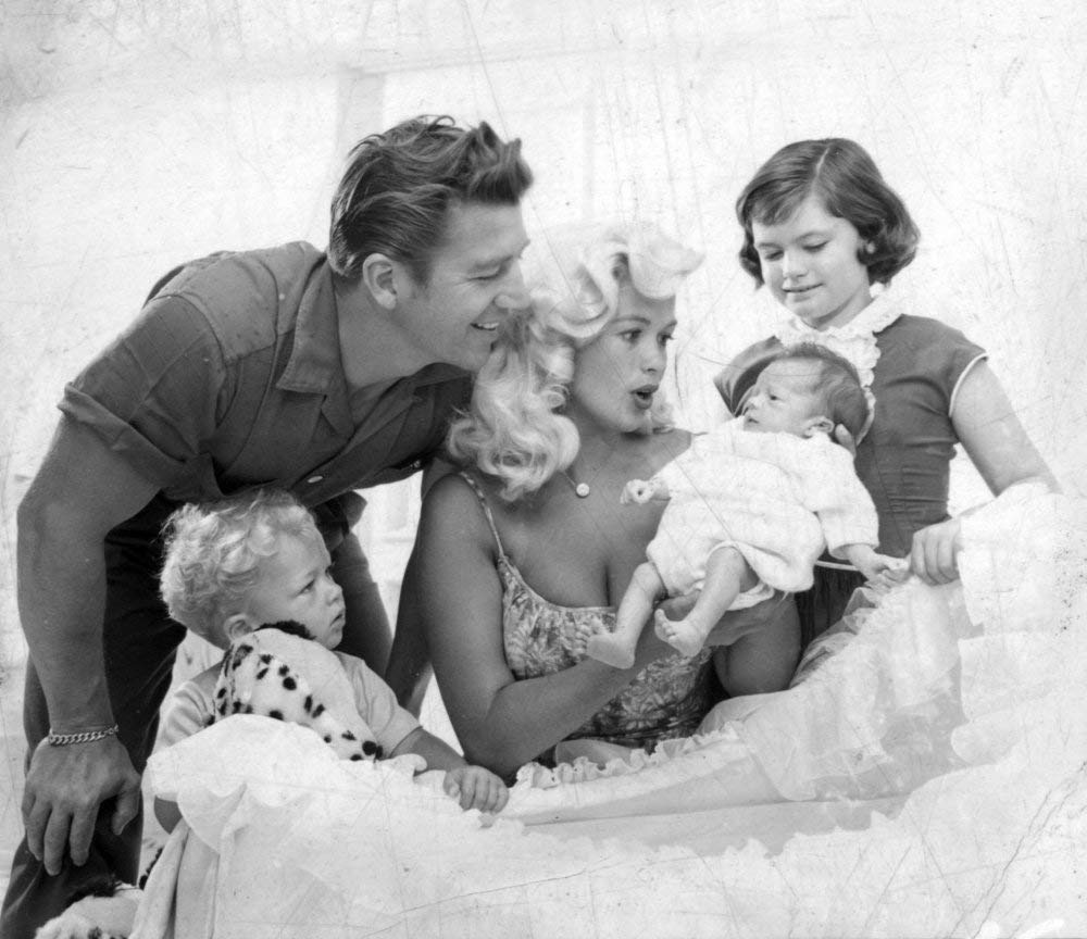 Jayne Mansfield was born Vera Jayne Palmer in Pennsylvania on April 19, 1933. Jayne was married and divorced three times and had five children. Her great love was likely with her second husband, Mickey Hargitay. She had her daughter, Mariska Hargitay, the well known actress, with Mickey. Mariska followed in her mother’s footsteps. Mickey clearly loved Jayne endlessly and put up with a lot of stunts that she pulled, which were not always family oriented; he stayed with her even when she was taking risks with sharing her sexuality.