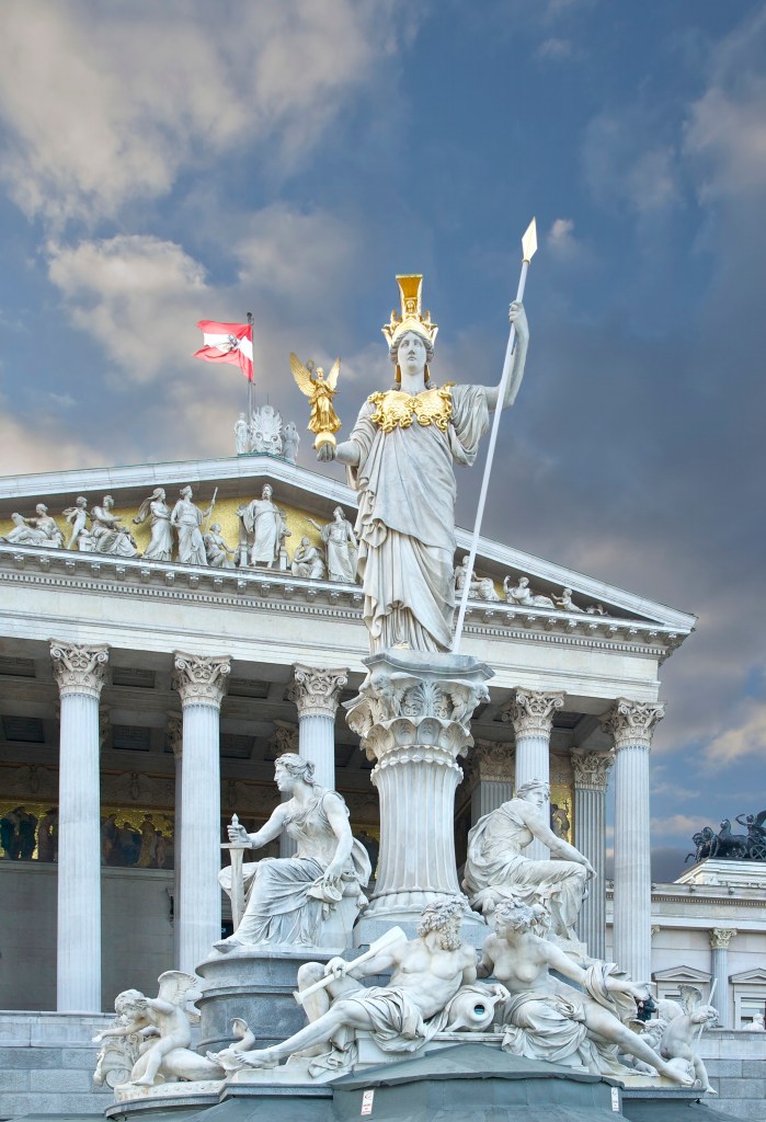 The temple has been recreated throughout Western culture, most notably outside of the Austrian Parliament buildings in Vienna, Austria. Appearances of the Caryatids in architecture also appear in New York City in the SoHo neighborhood. An ancient concept is alive and well in our current civilization, which speaks volumes for the enduring nature of Minerva’s representation.