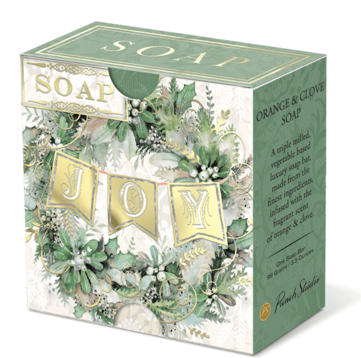 Last but not least… a simple, yet classic complementary gift that might be for your office’s Secret Santa gift exchange (obviously by mail this year!) and you aren’t quite sure what to get to complement another gift to tie it all together, you can’t go wrong with Punch Studio’s Winter Greens Boxed Soap, only $6.50.